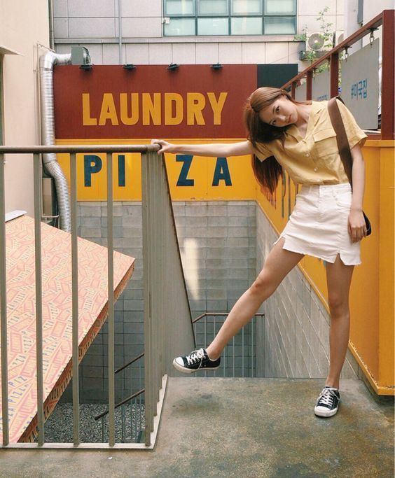 สดใสไว้รุ่นกับกระโปรงยีนส์ เสื้อยืดสีขาว กับรองเท้าผ้าใบ