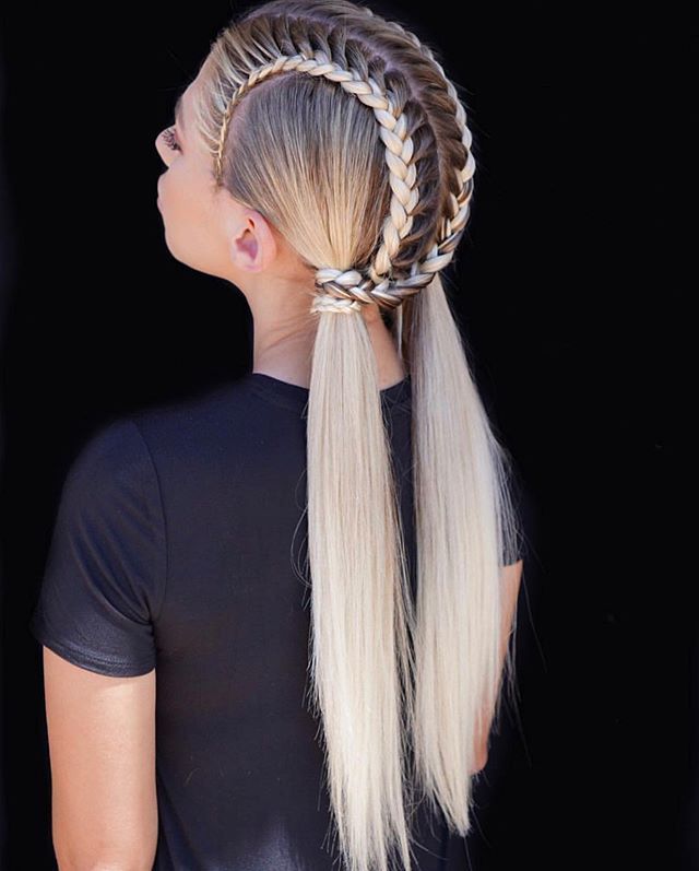 6. ถักเปียเเบบชิคๆ แล้วรวบสูง