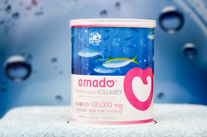 คอลลาเจนปลาที่ดีที่สุด ไม่เหมาะกับคนท้อง และ คนแพ้อาหารทะเล เพราะทำมาจากปลาทะเล อมาโด้คอลลาเจน เป็น P-Hydrolyzed คอลลาเจนเพียวไวท์ มีโมเลกุลขนาดเล็ก 100000 มล. เป็นคอลลาเจนนำเข้าจากเกาหลี สามารถดูดซึมได้ทันที ดีกว่าคอลลาเจนทั่วไปถึงมากถึง 4 เท่า สามารถช่วยซ่อมแซมส่วนที่สึกหรอ ช่วยสาวๆ ฟื้นฟูเซลล์ผิวจากความอ่อนล้า พร้อมกับลดริ้วรอยของใบหน้า ให้กลับมาเต่งตึง อ่อนกว่าวัย ลดรอยแผลเป็น สมานผิว ช่วยให้ผิวมีความชุ่มชื้น สุขภาพดี