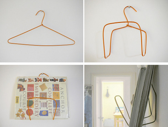 ไม้แขวนแบบลวดก็ดัดได้ มาทำเป็นชั้นวางหนังสือ เก๋ไปอีกแบบ