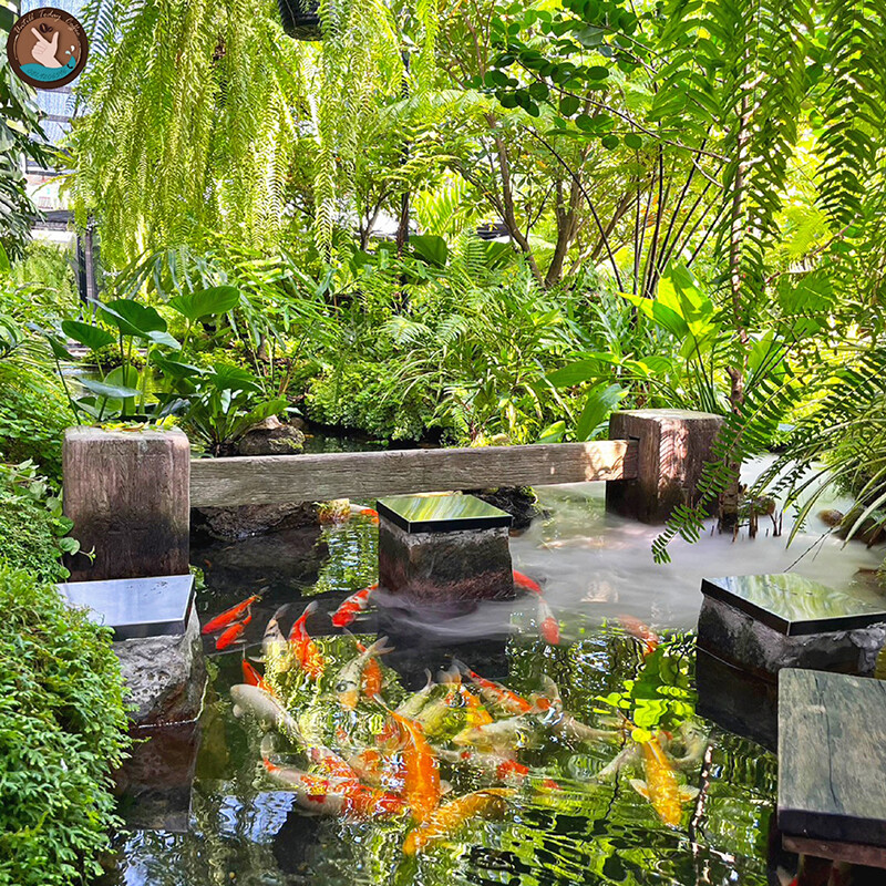 ร้านคาเฟ่คลองสามวา Untill Today Coffee คาเฟ่หทัยราษฎร์เปิดใหม่ บรรยากาศในสวนสีเขียวสุดร่มรื่น มีน้ำตกจำลอง ลำธารเล็กๆ และปลาคาร์ปแหวกว่าย เหมาะสำหรับคนที่อยากมาพักผ่อนหย่อนใจในวันหยุดมาก ที่นี่มีเมนูให้เลือกเยอะทั้งกาแฟ เครื่องดื่ม อาหาร ของหวาน และขนมไทย ตัวขนมไทยเสิร์ฟมาในถ้วยเล็กๆ เลือกได้เลยว่าอยากจะกินอะไร ไม่ว่าจะเป็นขนมชั้น บัวลอย หม้อแกง ขนมคนทีกาแฟ ที่นี่ยังมีบ่อสปาเท้า สามารถลงไปนั่งแช่เท้าให้น้องปลาสายน้ำผึ้งกับปลากาแดง สปาเท้าให้เราได้เลยค่ะ
