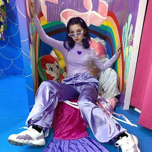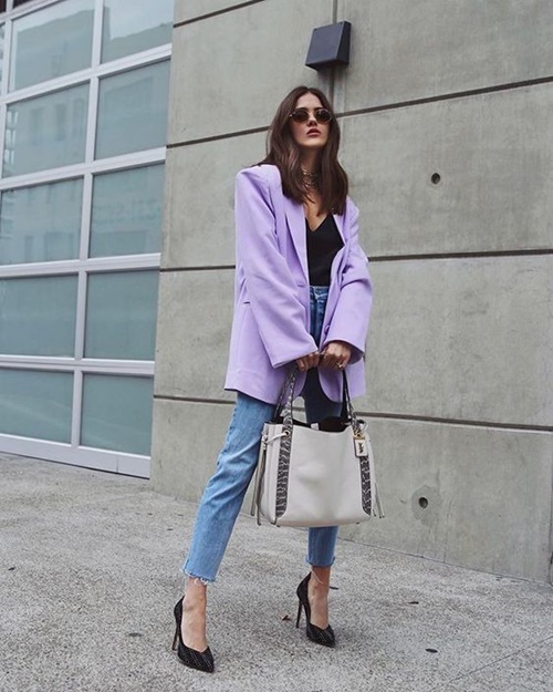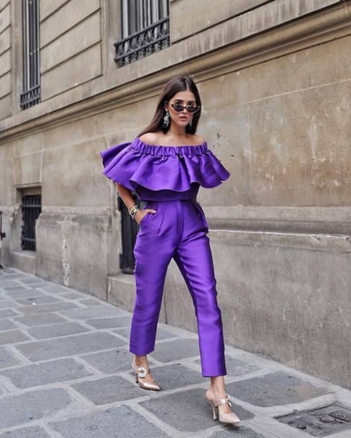 ถ้าอยากม่วงให้สุดแล้วหยุดที่โลกจำ ก็จัดม่วง+ม่วง+ม่วงกันไปเล้ยยย ทั้งท่อนบน ท่อนล่าง รองเท้า เครื่องประดับต่างๆ ก็ม่วงไปให้สุด อาจจะเล่นเลเยอร์ด้วยการไล่เฉดม่วงเข้ม ม่วงอ่อน เอาก็ได้ แต่จะม่วงเบอร์นี้ต้องมีความมั่นใจเกินร้อยด้วยนะจ๊ะ จะม่วงแล้วมาเหนียมไม่ได้นะไม่เกิด!