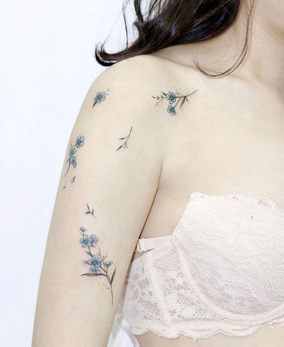 รอยสักดอกไม้สีฟ้าแบบร่วงโรย สวยงามมากๆ