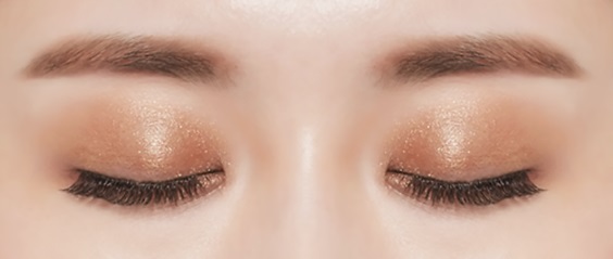 ทริคแรกคือการแต่งตาด้วยอายแชโดว์สีเดียว โดยไล่ระดับโทนสีด้วยแปรงแต่งตาในแนวตั้ง ทาลงไปบนเปลือกตา จากบนลงล่าง ซึ่งเราสามารถเลือกใช้อายแชโดว์กลิตเตอร์แบบมุกหรือเนื้อแมตต์ได้ตามใจชอบ แต่หากสาวๆ เป็นมือใหม่ที่ยังแต่งตาไม่ค่อยโปร แนะนำให้เริ่มต้นด้วยการใช้อายแชโดว์เนื้อมุกวิงค์ๆ ดีกว่า วิธีก็คือนำแปรงแตะสีอายแชโดว์ลงบนเปลือกตาในแนวตั้ง ค่อยๆ เกลี่ยทั่วเปลือกตา หากตาชั้นเดียวให้เบลนด์สีอายแชโดว์โดยวัดจากขอบตาขึ้นมาบนเปลือกตาประมาณ 1 เซนดิเมตร จากนั้นเบลนด์สีอายแชโดว์ที่บริเวณชั้นรอยพับของเปลือกตาบนให้เข้ม จากหัวตายาวไปถึงหางตา ส่วนขอบตาล่างให้เบลนด์สีอายแชโดว์ให้เข้มจากกึ่งกลางตาไปถึงปลายหางตา เพียงเท่านี้ก็สร้างดวงตามีเสน่ห์สวยวิงค์ได้อย่างง่ายๆ แล้ว
