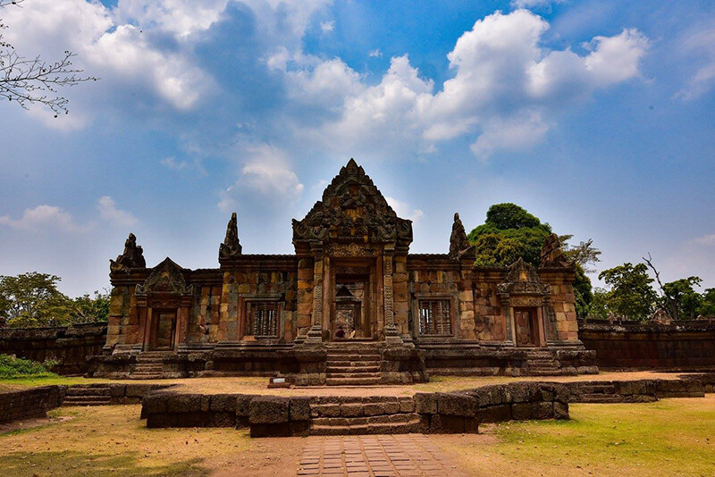 ปราสาทหินเมืองต่ำ อีกหนึ่งจุดเช็คอินบุรีรัมย์ที่สวยงามไม่แพ้ปราสาทพนมรุ้ง เป็นโบราณสถานเก่าแก่ ศิลปะขอมแบบโบราณ ตั้งอยู่ ณ พื้นราบเบื้องล่างของเขาพนมรุ้ง ใช้เป็นศาสนสถานในศาสนาฮินดู สันนิษฐานว่าสร้างขึ้นตั้งแต่พุทธศตวรรษที่ 16-17 ลักษณะเด่นของปราสาทหินเมืองต่ำ มีปราสาทอิฐ 5 องค์ สร้างอยู่บนฐานเดียวกัน ก่อด้วยศิลาแลง องค์ปราสาททั้ง 5 ตั้งเรียงกันเป็น 2 แถว แถวหน้า 3 องค์ แถวหลัง 2 องค์ มีภาพจำหลักหินบนหน้าบัน และทับหลังที่สวยงามมาก