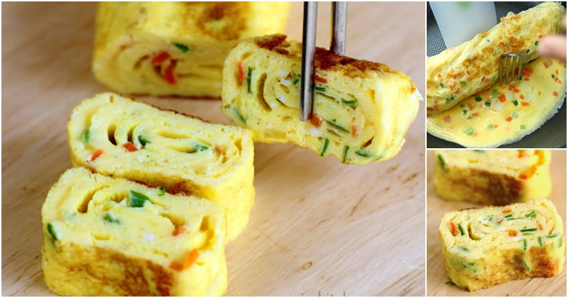 เมื่อไข่ชั้นแรกเริ่มสุก แล้วก็ม้วนไข่ให้เป็นโรล และดันไข่ขึ้นไปด้านบนของกระทะ เสร็จแล้วก็เทชั้นที่สองลงไป ทำเหมือนเดิมจนชั้นที่สี่ที่ห้าหรือจนกว่าไข่ที่ผสมไว้หมด เมื่อทำเสร็จหมดเรียบร้อยแล้ว นำขึ้นมาตัดแบ่งชิ้นละเท่าๆ กัน แล้วจัดใส่จานเสิร์ฟได้เลยค่ะ
