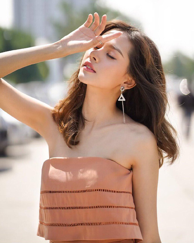 มิน พีชญา บังแดดแล้วทำตาปรือจือปากเบาๆ