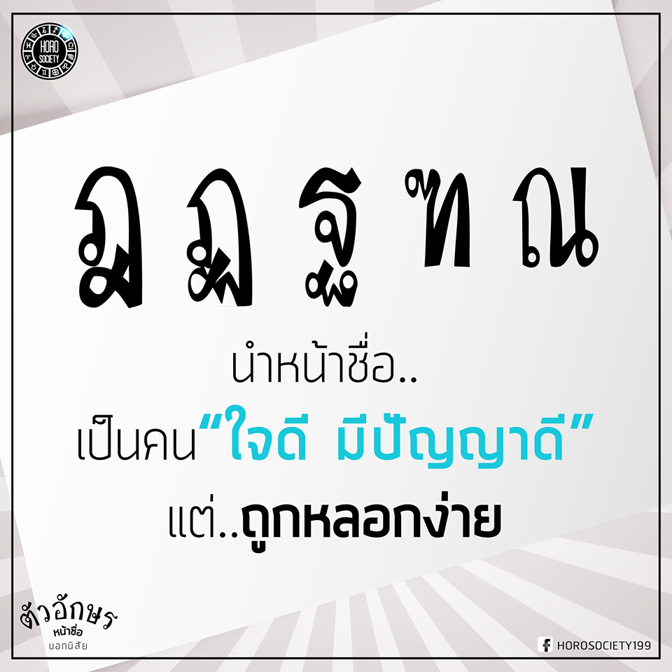 คนที่มีอักษร ฎ ฏ ฐ ฑ ณ นำหน้าชื่อ มักจะเป็นผู้ที่เข้ากับคนง่าย ใจดี ชอบช่วยเหลือคนอื่น แต่ใครทำอะไรให้เจ็บช้ำน้ำใจแล้วจะลืมยาก แม้ใจดี มีเมตตาก็ตาม นอกจากนั้นยังชอบศึกษาเรียนรู้ เพราะเป็นคนมีสติปัญญาดี ปรับสภาพได้ดี ความทรงจำดี แต่มีข้อเสียคือมักชอบพูดจาเหลวไหล ก่อศัตรูได้เพราะคำพูด และมักถูกหลอกเพราะเชื่อคนง่าย ศรัทธา งมงาย หลงลืมสติ เสียสติ เป็นเหมือนคนโรคประสาท