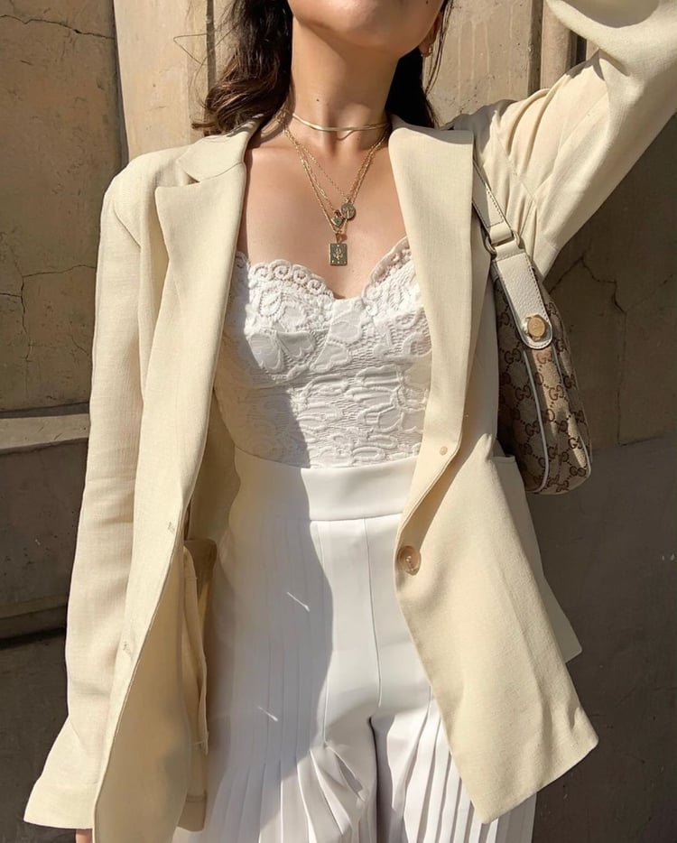 เลือกเสื้อสายเดี่ยวที่ประดับลูกไม้หรือเสื้อที่ช่วงอกลึกสักหน่อยเพื่อเพิ่มความเซ็กซี่ สามารถนำมาใส่เป็นเสื้อตัวในแล้วสวมเสื้ออีกตัวทับเพื่อเพิ่มความน่าค้นหาได้ หรือจะสวมเสื้อสายเดี่ยวตัวเดียวแล้วแมทช์กับกางเกงหรือกระโปรงสีสวยๆ ลายพิมพ์เก๋ๆ ก็เข้ากันได้ดี