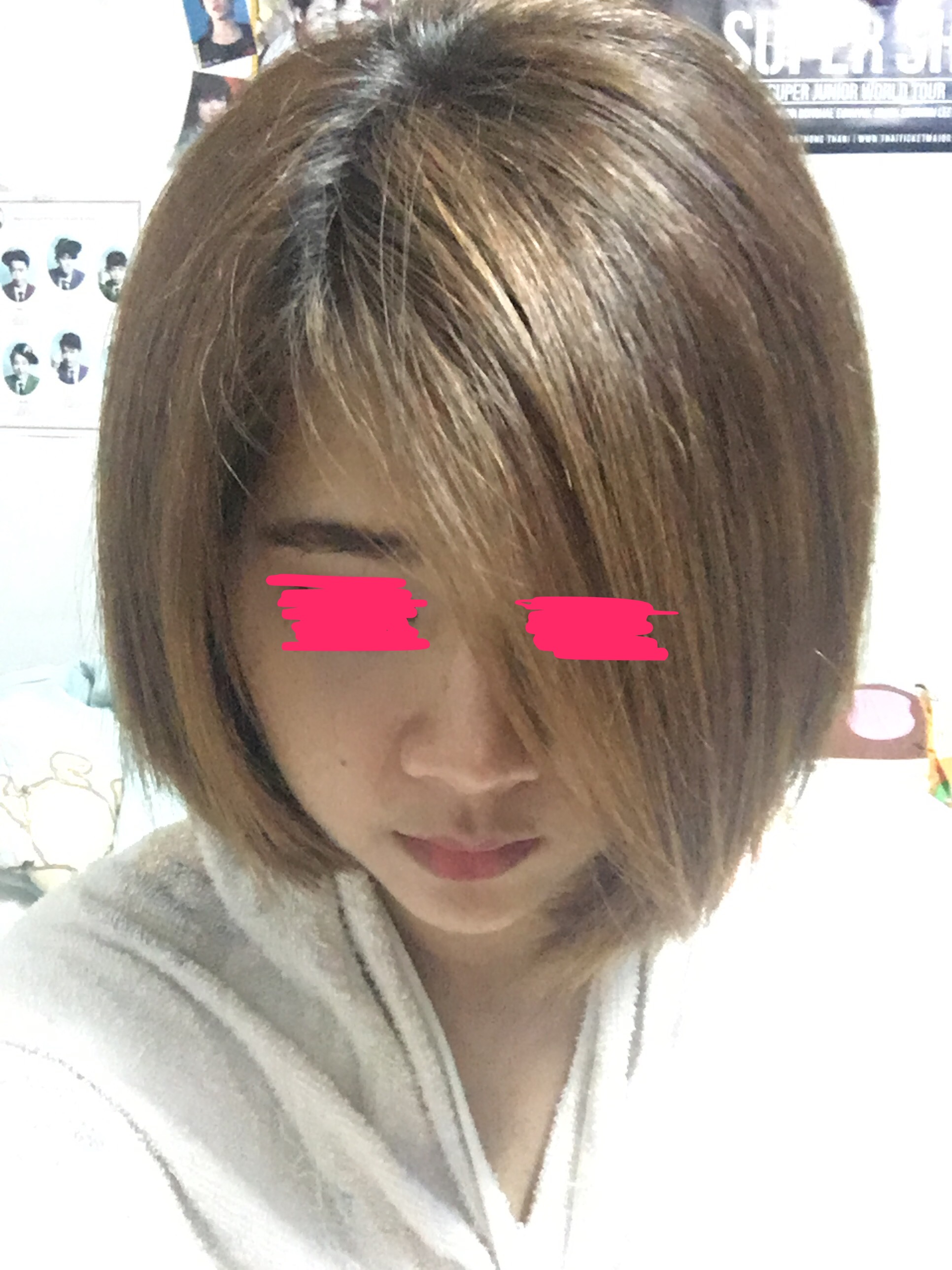 ผลสรุปจ้าาา …. ตามภาพเลยค่ะ ไม่ต้องพูดเยอะ ในใจก็มีคิดนะคะว่าเราควรใช้ 2 ซองมั้ย ถ้าจะทำทั่วหัว หรือครั้งต่อไป จะลองทำมันช่อนึงแบบชัดๆ ไปเลย เพราะยังเหลืออีก 2 สี แต่สิ่งที่วิเคราะห์ออกมาได้ตามความคิดส่วนตัว นั่นก็คือ เอาจริงๆ มันก็ควรจะเหลือบเป็นช่อๆ มั้ย หรือเห็นแบบแหล่มๆ ว่าฟ้าๆ หรือน้ำเงินบ้าง TT และที่แน่ๆ ห้ามใช้มือเปล่าทำเหมือนรูปในเพจเด็ดขาดค่ะ มิเช่นนั้น สภาพจะเป็นเช่นนี้ แฮร่!!!
