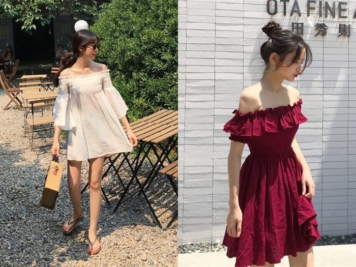 ส่วนใครเป็นสายคุมโทน ลองเลือกเป็นเดรสเปิดไหล่แบบตัวเดียวจบ ใส่กับรองเท้าผ้าใบ รองเท้าส้นสูง รองเท้าแตะ หรือรองเท้าสานก็ได้ค่ะ ง่ายแต่จบ! นอกจากนี้ยังสามารถเลือกท่อนล่างเป็นสีเดียวกันมาจับคู่ให้เข้าเซ็ตเหมือนเป็นชุดเดียวกันก็ได้ ยิ่งแต่งหน้าให้คุมโทนอีกนิด ถ่ายรูปมาน่ารักแน่นอน