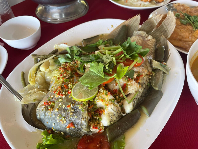 แวะทานอาหารอร่อยๆ กันต่อที่ ร้านอาหารป้าสำราญ เป็นร้านอาหารอุทัยธานีเจ้าเด็ด ตั้งอยู่ที่ร้านอาหารป้าสำราญ เป็นร้านที่ตั้งอยู่ริมแม่น้ำเจ้าพระยา บรรยากาศดีมากๆ วิวปังสุดๆ สำหรับเมนูมีให้บริการแบบจัดเต็ม โดยเฉพาะใครที่ชอบทานปลา ต้องถูกใจแน่นอน เมนูแนะนำคือ ห่อหมกปลาลึง ต้มเค็มปลาสด ปลาเนื้ออ่อนทอดกระเทียม ปลาลึงทอดน้ำปลา กุ้งชุบแป้งทอด เต้าหู้อบหม้อดิน และปลาลึงนึ่งซีอิ๊ว ขนปลามาทั้งแม่น้ำขนาดนี้ไม่แวะทานไม่ได้แล้วค่ะ