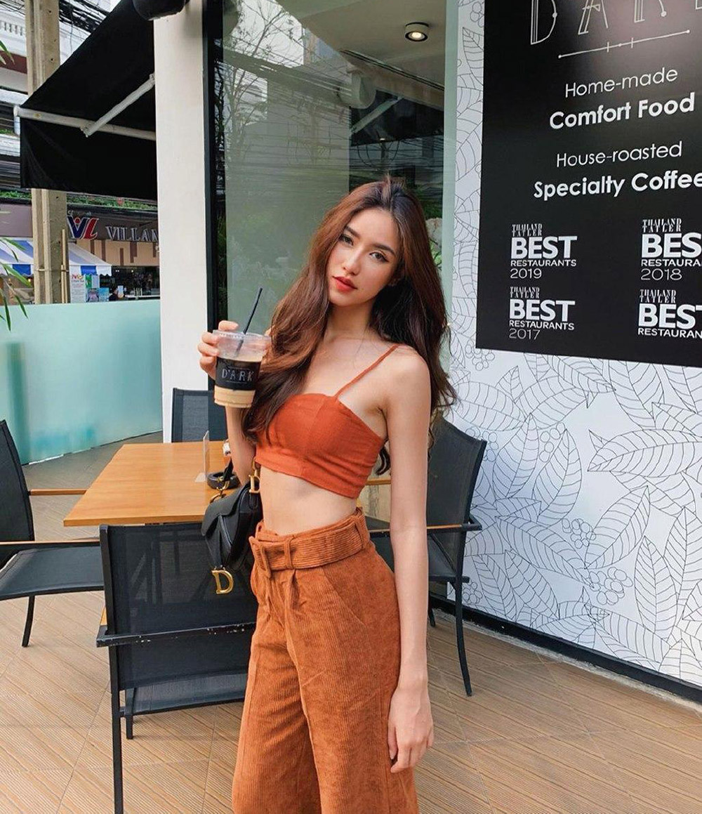 เสื้อสีส้มตัดกับดำแบบ พลอย หอวัง ก็แซ่บไฟลุกอยู่นะ