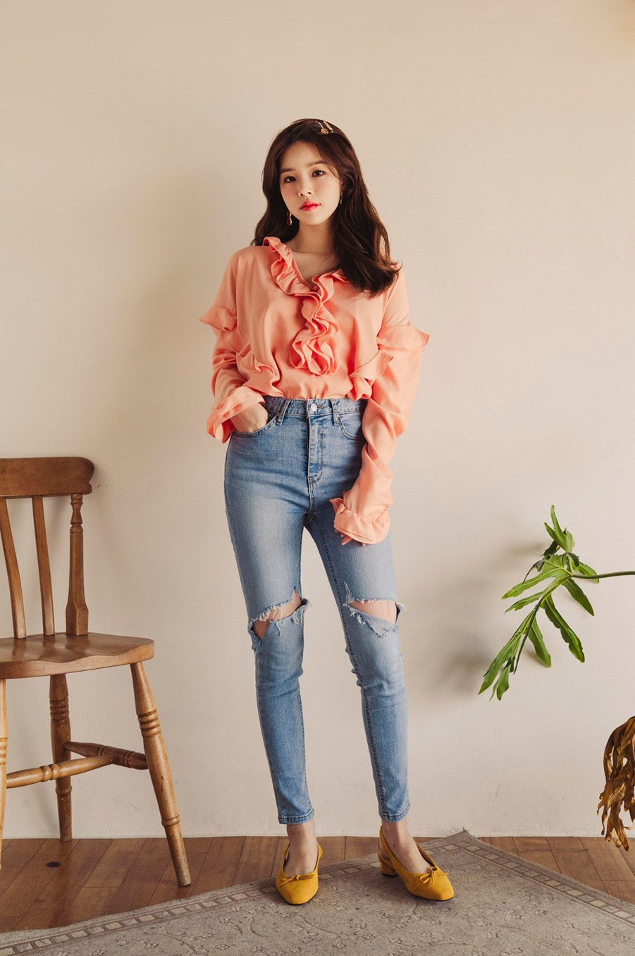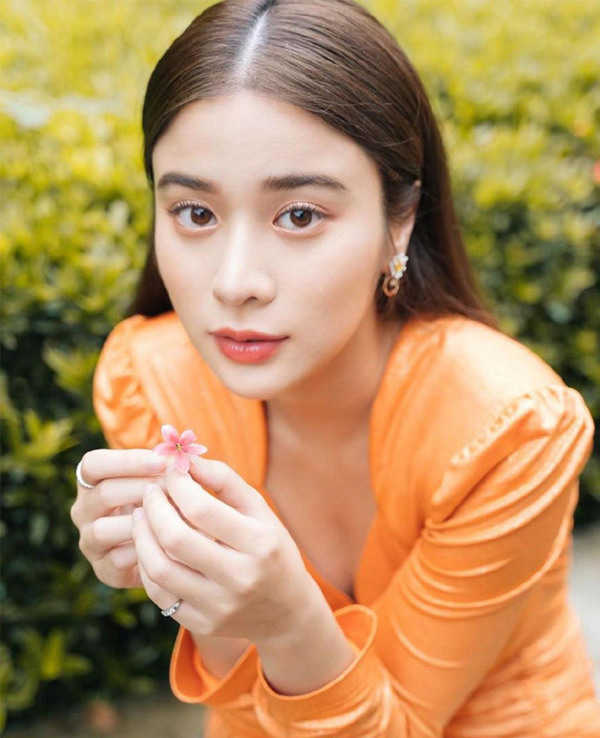 เก้า สุภัสสรา กับเสื้อแขนยาวสีส้ม สดใสเบาๆ
