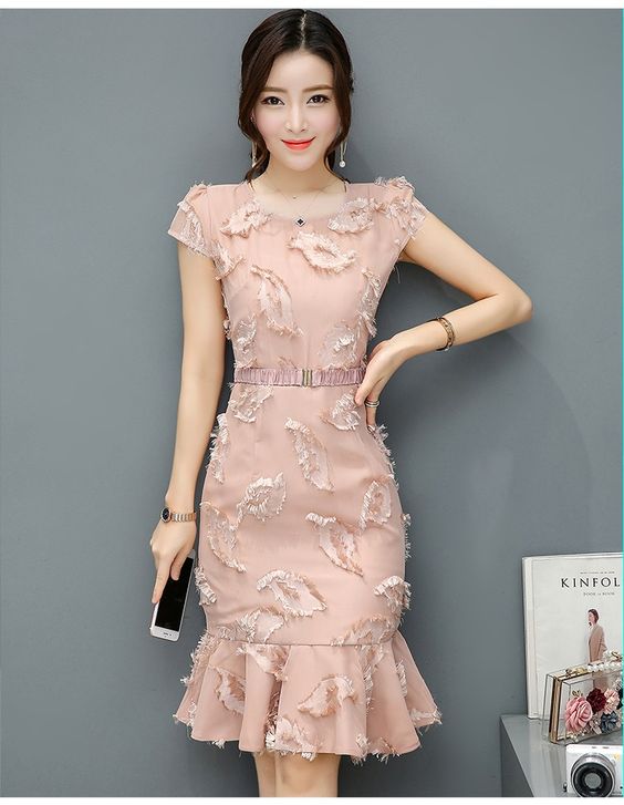 เดรสเข้ารูปสีชมพูหวาน เรียบๆ แต่ดูดี