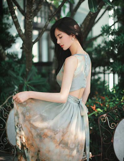 ชุดเดรสสีเขียวสุดน่ารัก โชว์หลังเล็กๆ
