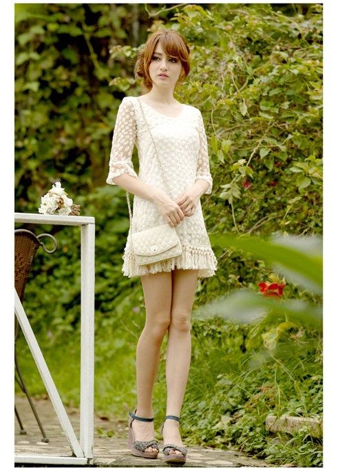 เดรสสั้นแขนยาวลายลูกไม้ สวยหวานน่ารัก