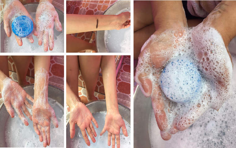 – สบู่มีลักษณะก้อนกลม จับถนัดมือดี