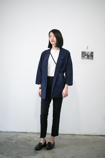 สไตล์สาวเท่กับเสื้อคลุมสีดำ เสื้อยืดสีขาว +กางเกงยีนส์