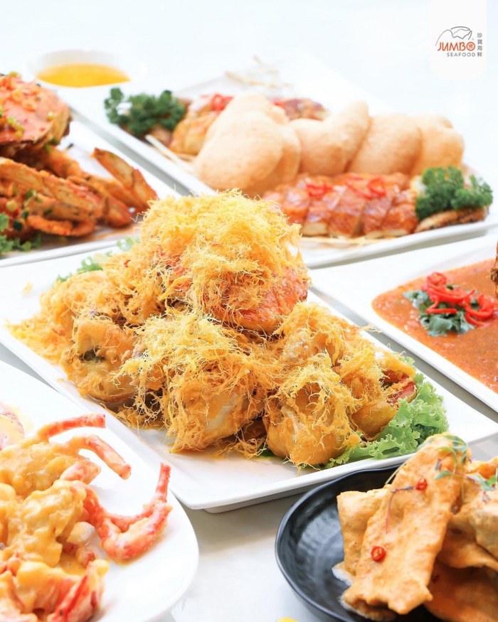 JUMBO Seafood Bangkok ร้านอาหารจีนชื่อดังจากประเทศสิงคโปร์ ที่มีทีเด็ดอยู่ที่ ปูผัดซอสพริก ไซส์จัมโบ้ ซอสเข้มข้นไม่เผ็ดมาก ยังมีปูผัดซอสพริกไทยดำ กุ้งทอดผัดพริกไทยและเกลือ ซี่โครงหมูซอสมอคค่า และหนังปลาทอดไข่เค็มที่อร่อยเด็ดไม่แพ้กัน เป็นร้านอาหารในกรุงเทพฯ ที่ต้องมาให้ได้