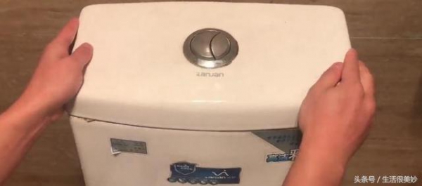 ขั้นตอนที่สาม : เปิดฝาของถังพักน้ำชักโครกออกแล้วใส่ถุงเท้าเข้าไป
