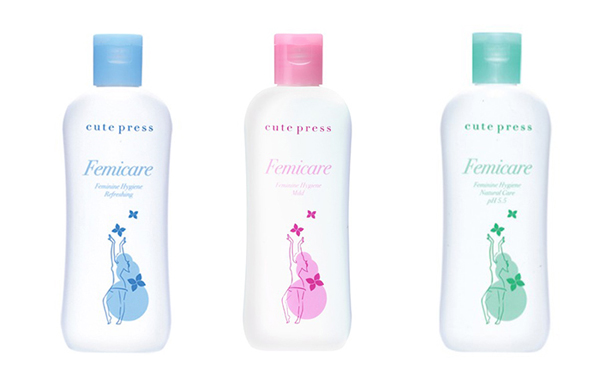 มาต่อกันด้วย Cute Press Femicare Feminine Hygiene เป็นน้ำยาล้างจุดซ่อนเร้น มี 3 สูตรด้วยกัน ริ่มกันที่สูตร Refreshing ฝาสีฟ้า ที่เน้นความสดชื่นมีชีวิตชีวา เติมเต็มความมั่นใจให้สาวๆ ได้ตลอดวัน ด้วยการผสานคุณค่าจาก Lactic Acid และ Farsenol ช่วยป้องกันกลิ่นอับชื้น ลดการสะสมของเชื้อแบคทีเรีย พร้อมเพิ่มความหอมสดชื่นจาก Rosemary Extract ต่อมาด้วยสูตร Mild ฝาสีชมพู ดูแลจุดซ่อนเร้นอย่างอ่อนโยนด้วยส่วนผสมของน้ำนมบริสุทธิ์ พร้อมด้วย Lactic Acid และ Farsenol ช่วยต้านแบคทีเรียและลดกลิ่นไม่พึงประสงค์เช่นเคย และสุดท้าย Natural Care ฝาสีเขียว สูตรปราศจากน้ำหอม ดูแลจุดซ่อนเร้นได้อ่อนโยนเป็นพิเศษ ผสานคุณค่าสารสกัดจากธรรมชาติอย่าง Blue Chamomile ช่วยต้านการอักเสบและลดอาการระคายเคือง และ Thyme Flower Extract ต้านแบคทีเรียเชื้อราและปลอบประโลมผิวอย่างโอนโยน