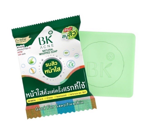 สบู่ลดสิวถูกและดี ซื้อได้ในเซเว่น BK Acne Natural Whipped Soap เป็นสบู่ล้างหน้าลดสิวที่มีส่วนผสมของสารสกัดจากใบบัวบก ทีทรีออยล์ ด้วยเทคโนโลยีจากประเทศญี่ปุ่น ผสานคุณค่าของกรดอะมิโน เอสิด ช่วยชำระล้างสิ่งสกปรกได้อย่างสะอาดล้ำลึก และช่วยลดการเกิดเชื้อแบคทีเรีย อันเป็นสาเหตุของการเกิดสิว และยังมีส่วนผสมของวิตามินซีและวิตามินอี ช่วยผลัดเซลล์ผิวอย่างอ่อนโยน ให้ผิวหน้าขาวกระจ่างใสขึ้นอย่างเป็นธรรมชาติ นอกจากนี้ยังมีสารสกัดจากว่านหางจระเข้ช่วยทำหน้าที่ลดการอักเสบ ลดเลือนรอยดำ รอยแดงที่เกิดจากสิวได้อย่างดีเยี่ยม และช่วยให้ผิวชุ่มชื่นไม่แห้งตึงหลังจากล้างหน้า ปราศจาก SLS, น้ำหอม, แอลกอฮอล์, พาราเบน และ MIT
