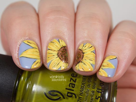 สวัสดีค่ะสาวๆ…วันนี้ GangBeauty ได้รวบรวมไอเดียการแต่งเล็บง่ายๆมาฝากสาวๆกันอีกแล้วค่าาา…สาวคนไหนที่ชอบดอกทานตะวัน พลาดไม่ได้เลยนะคะ…นอกจากจะได้รวบรวมไอเดียเพ้นท์เล็บลายดอกทานตะวันแบบต่างๆมาให้ได้ดูกันแล้ว ยังมีขั้นตอนการเพ้นท์เล็บลายดอกทานตะวันง่ายๆมาให้ได้ดูกันอีกด้วย! งั้นเรามาดูกันเลยดีกว่าค่ะ