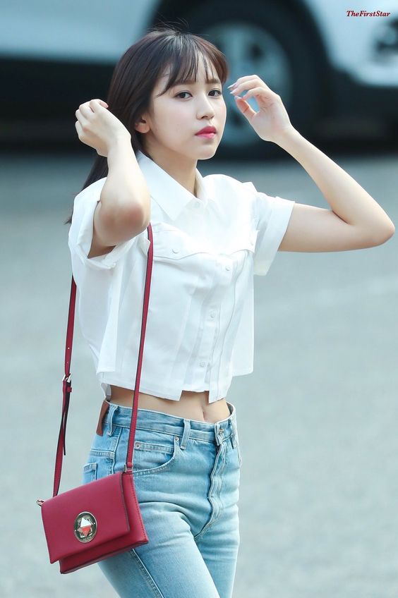เสื้อเชิ้ตครอปสีขาวแขนสั้นใส่กับกางเกงยีนส์เอวสูง