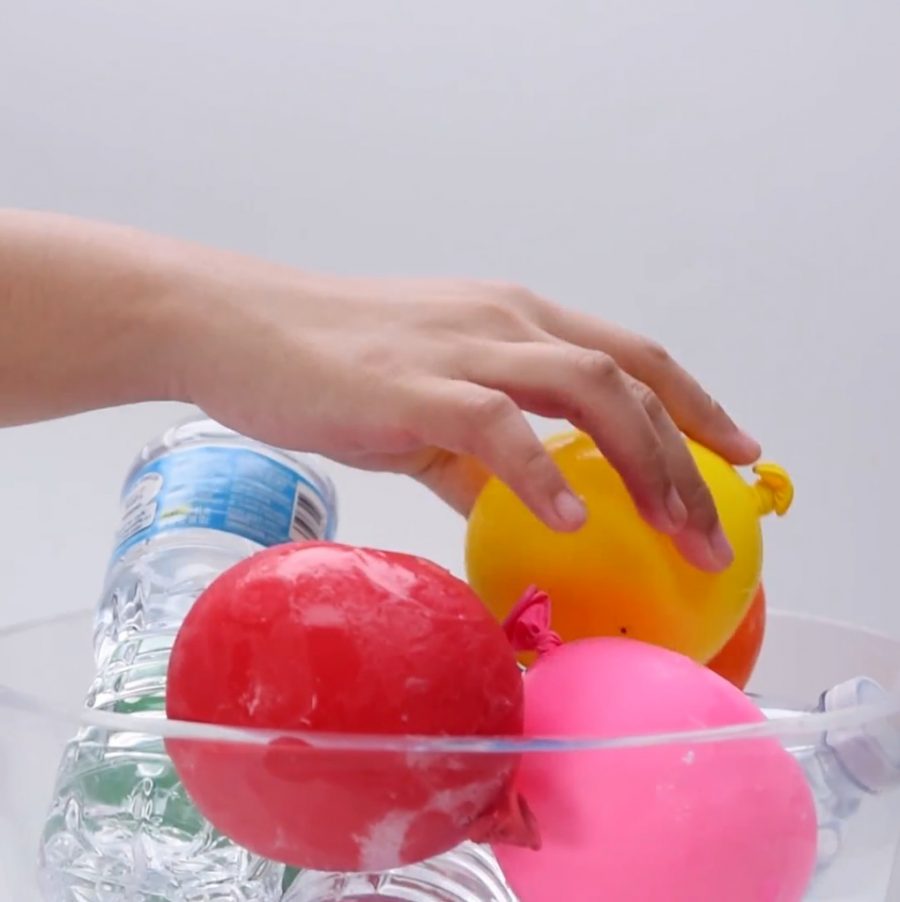 5. นำลูกโป่งใส่น้ำแช่ให้กลายเป็นน้ำแข็ง แล้วนำไปแช่น้ำนอกสถานที่ ไว้ตกแต่งสวยงาม