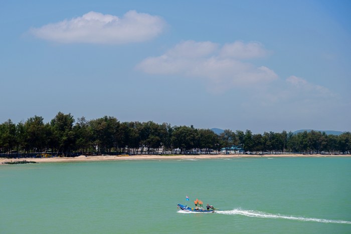 หาดสมิหลา ที่เที่ยวสงขลาที่บอกเลยไม่มาไม่ได้ เพราะที่นี่เป็นชายหาดที่มีชื่อเสียง มีโขดหินขนาดย่อมยื่นลงไปในทะเล ป่าสนร่มรื่น และมีทรายขาวละเอียดที่เรียกว่าทรายแก้วค่ะ ไฮไลท์สำคัญที่ทุกคนไม่ควรพลาดมาถ่ายรูปคือรูปปั้นนางเงือกทอง ที่เป็นเสมือนสัญลักษณ์ของหาดสมิหลา อีกทั้งเรายังมองเห็นเกาะหนู เกาะแมว จากตรงนี้ได้ด้วยนะ เหมาะกับการมาเล่นน้ำ นั่งรับลมทะเลเย็นๆ มากเลย