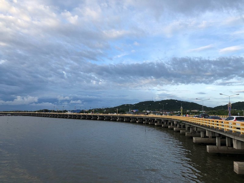 จุดเช็กอินบางแสนอีกที่ สะพานชลมารควิถี สะพานรูปตัว S เลียบชายทะเล ระยะทางประมาณ 5 กิโลเมตร กลายเป็นสถานที่พักผ่อนในช่วงเย็นชาวชลบุรี นักท่องเที่ยวนิยมมาขับรถชมวิวทะเล บางคนจอดรถนำอาหารมานั่งกินกันริมฟุตบาท บริเวณจุดพักรถที่จัดไว้ บรรยากาศดีสุดๆ