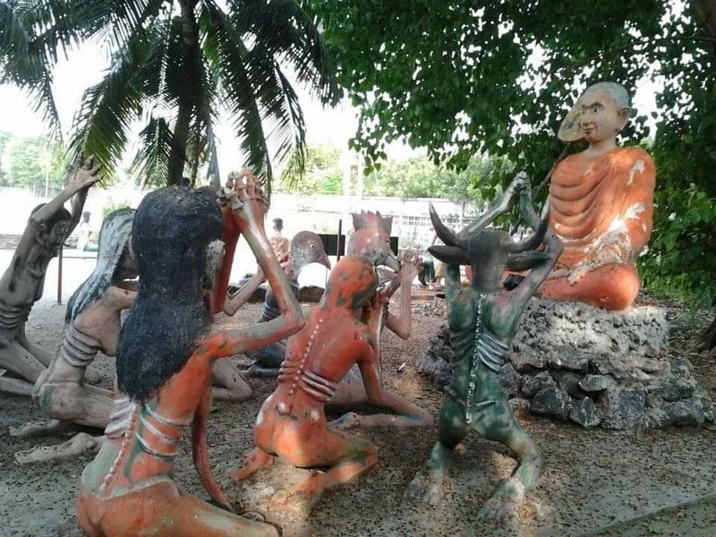 ที่เที่ยวบางแสน วัดแสนสุขสุทธิวราราม หรือ วัดแสนสุข วัดเก่าแก่กว่า 30 ปี ภายในวัดจะมีประติมากรรมปูนปั้นเกี่ยวกับศาสนา ถูกแบ่งออกเป็นสามส่วน คือ สวนพุทธ เมืองสวรรค์ และแดนนรก ซึ่งรูปปั้นทั้งหมดนี้ มีทั้งให้ข้อคิด คติสอนใจ และบางชิ้นงานยังแฝงไปด้วยอารมณ์ขันด้วย