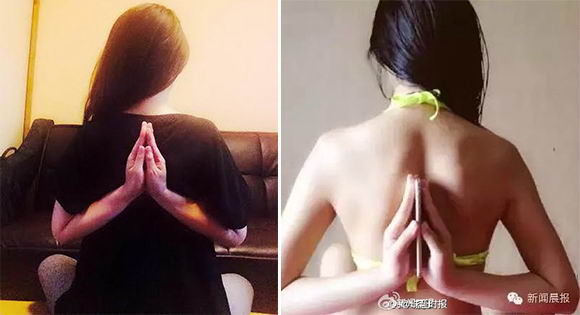 2. สามารถพนมมือไขว้หลัง ใครยิ่งทำสูงก็แสดงว่าตัวอ่อน ร่างกายฟิต และหุ่นดี