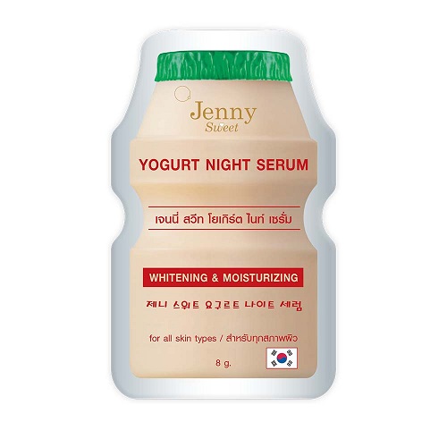 เพจเกจจิ้งชนะเลิศแค่เห็นซองก็อยากซื้อมาใช้แล้วกับครีมซองเซเว่นยี่ห้อ Jenny Sweet Yogurt Night Serum เซรั่มบำรุงผิวที่มีสารสกัดจากโยเกิร์ต น้ำมันบริสุทธิ์จากเมล็ดทานตะวัน และสารสกัดพืชนานาชนิด ที่ช่วยผลัดเซลล์ผิวเก่า เผยผิวใหม่ที่กระจ่างใสเนียนนุ่ม ชุ่มชื่น จึงช่วยลดเลือนริ้วรอยและจุดด่างดำ พร้อมบำรุงผิวให้กระจ่างใสขึ้นอย่างเป็นธรรมชาติ ตอนฉีกซองออกมาจะได้กลิ่นหอมอ่อนๆ ของโยเกิร์ตด้วยนะ