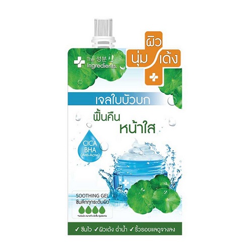 เริ่มกันที่ครีมซองเซเว่นตัวแรกกับ THE INGREDIENTS Cica Blemish Soothing Gel เจลใบบัวบกตัวดังที่ช่วยแก้หน้าโทรม ให้ผิวดูอิ่มน้ำ สดชื่น กระจ่างใส ด้วยสารสกัดสำคัญอย่างใบบัวบกจึงช่วยฟื้นฟูผิวจากสิว ป้องกันการเกิดสิวใหม่ ปกป้องผิวหลังออกแดด และยังช่วยเติมความชุ่มชื้น ให้ผิวอิ่มฟูดูเรียบเนียน ฟื้นคืนหน้าใสได้จริงๆ ที่สำคัญเจลตัวนี้ยังใช้ได้ทั้งกับหน้าหรือผิวกายอีกด้วย จะทาหน้า ทาผิว ข้อศอก หัวเข่า มือหรือเล็บที่ต้องการการบำรุงก็ได้ทั้งนั้น เรียกได้ว่าสารพัดประโยชน์จริงๆ