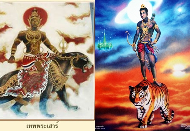 พระเสาร์ถูกสร้างจากพยัคฆ์ (เสือ) 10 ตัว พระอิศวรร่ายเวทมนต์ให้เป็นผง ห่อด้วยผ้าสีดำ แล้วปะพรมน้ำอมฤต เสกให้เป็นพระเสาร์ มีวรกายดำคล้ำ ทรงพยัคฆ์เป็นพาหนะ ประจำอยู่ทิศตะวันตกเฉียงใต้ (ทิศหรดี)