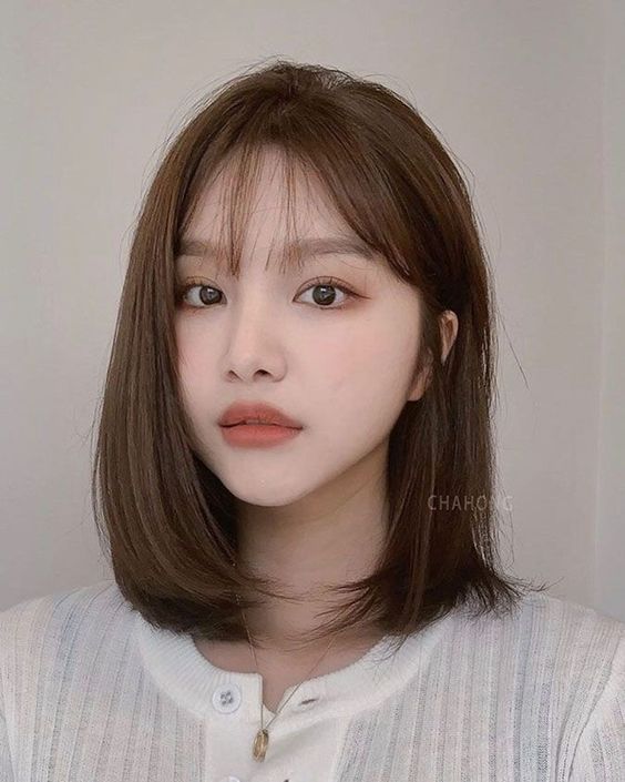 ทรงผมตรงประบ่ากับหน้าม้า เพิ่มวอลลุ่มให้ผมด้วยการดัดปลายผมให้งุ่มเข้า