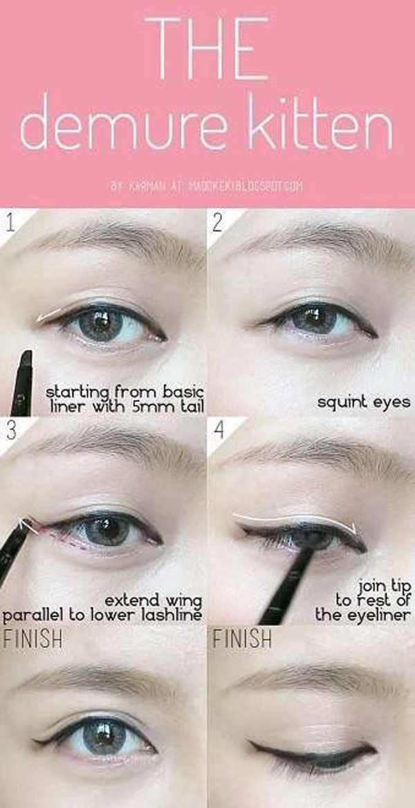 อย่างเช่น การเขียนอายไลเนอร์แบบ natural ก็จะให้ความรู้สึกใสๆ เหมาะกับการแต่งในชีวิตประจำวัน หรือ ถ้าอยากแต่งหน้าออกงานกลางคืน ก็ลองเขียนอายไลเนอร์แบบ feisty kitty ดูค่ะ! ถ้าอย่างนั้น เราลองมาดูขั้นตอนการเขียนอายไลเนอร์กันเลยดีกว่าค่าาา…