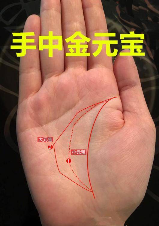 คนประเภทนี้จะมีลายเส้นที่ฝ่ามือซึ่งมีลักษณะคล้าย เงินหยวนเป่า หรือ เงินก้อนจีนโบราณ โดยที่จะมีเส้นแบ่งอย่างชัดเจนนั้น แสดงว่าเป็นคนมีโชคลาภด้านเงินทองมาก มีคลังสมบัติที่มากมาย มีบ้าน มีรถ ไม่มีอะไรขาดมือ