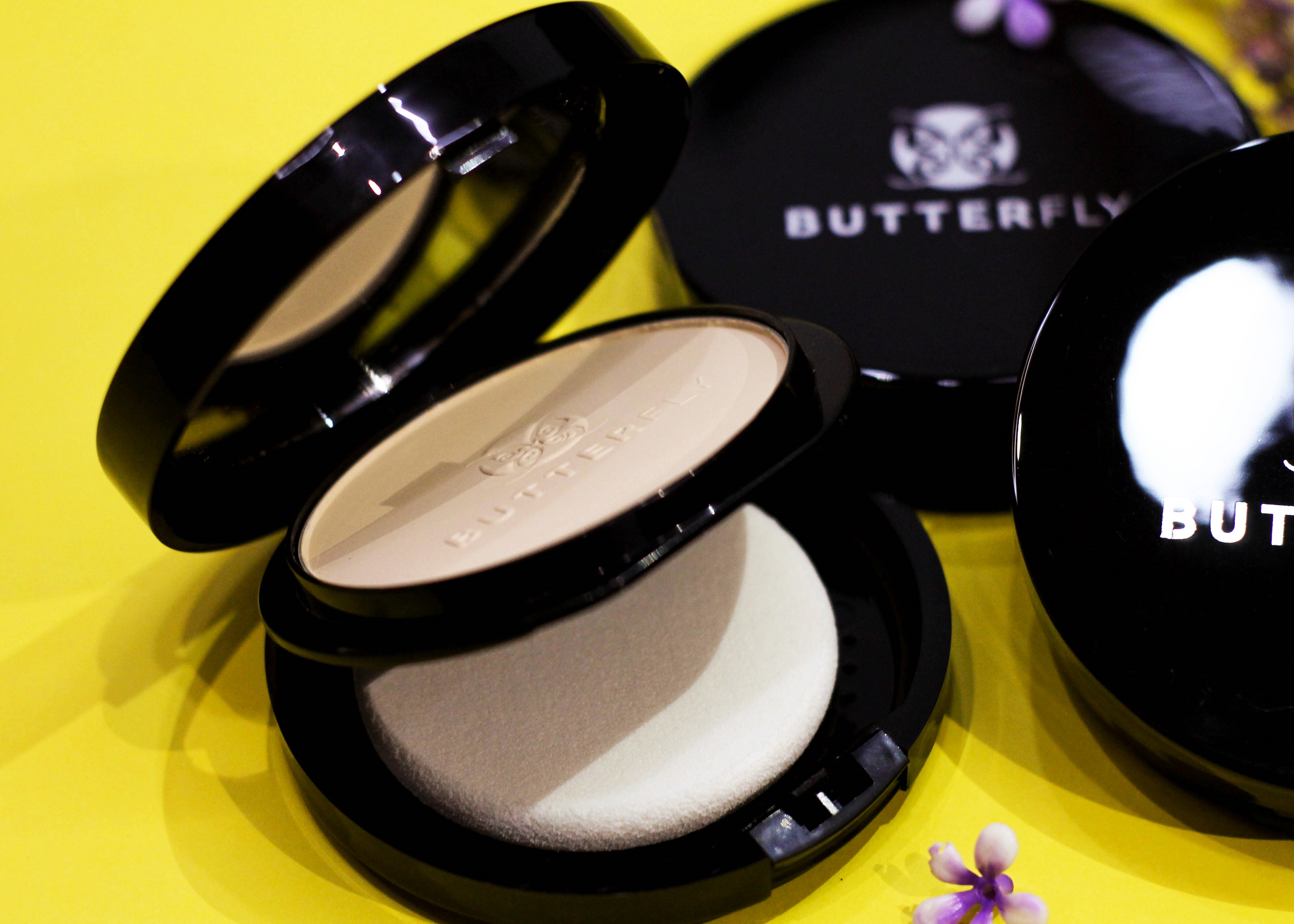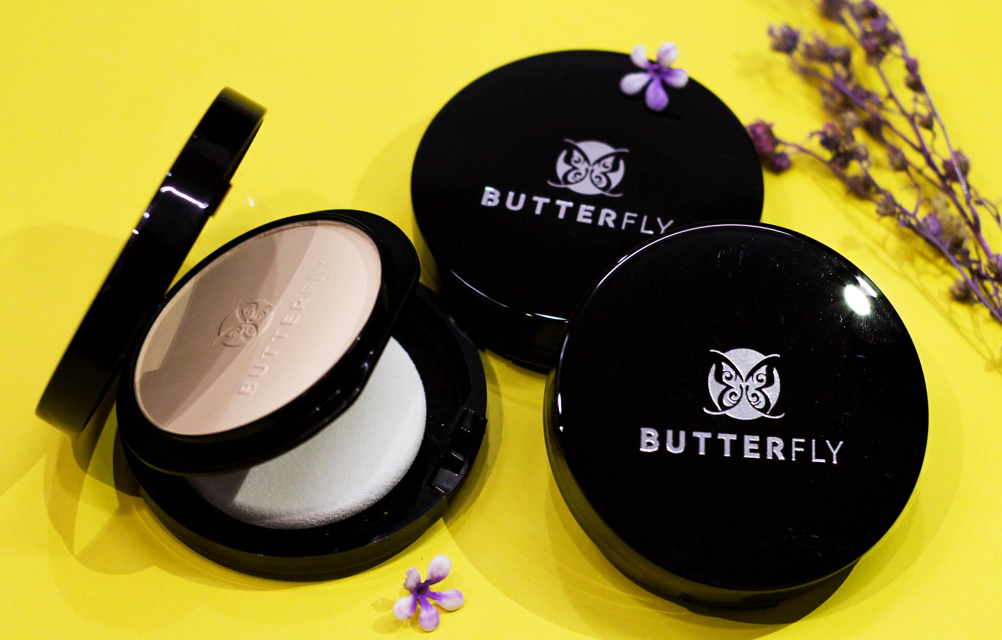 มาแกะกล่องกัน พอแกะกล่องออกมาแล้ว เราจะเจอตลับแป้งสีดำเลื่อม มีโลโก้ผีเสื้อ และชื่อแบรนด์ BUTTERFLY อยู่ด้านบนตลับ เปิดมาด้านในมีกระจก และเนื้อแป้งปั้มโลโก้สวยงาม