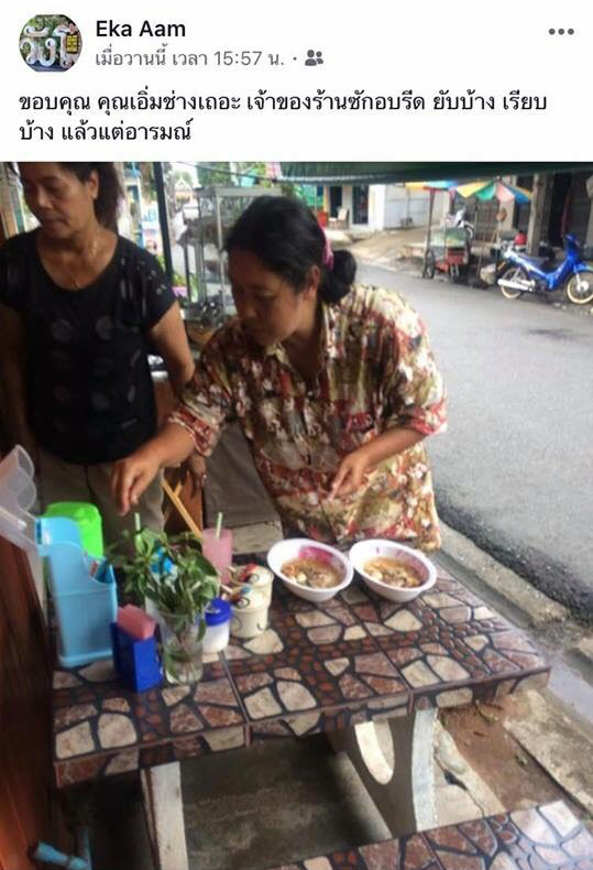 แต่ถ้าตัวเองอยู่เวลาลูกค้ามานั่งกินก๋วยเตี๋ยว ทั้งคนแก่ และวัยรุ่น ก็จะถ่ายรูปลูกค้า พร้อมเขียนแคปชั่นแนวกวนๆ หยิกแกมหยอก โพสต์ในเฟซบุ๊กของตัวเองที่ใช้ชื่อว่า “Eka Aam” ซึ่งลูกค้าส่วนใหญ่ ก็จะอยู่ในระแวกใกล้เคียงร้าน จนกลายเป็นจุดขายของร้าน และเริ่มมีลูกค้าหน้าใหม่เพิ่มขึ้น โดยไม่ได้ตั้งใจ ซึ่งราคาขาย จะขายอยู่ที่ถ้วยละ 30 บาทเท่านั้น ไม่มีถ้วยพิเศษ ร้านจะเปิดทุกวันตั้งแต่เวลา 08.00 น. – 16.00 น. ไม่มีวันหยุดร้านก๋วยเตี๋ยวเรือวัดโพธิ์ซอยสอง เลขที่ 42/2 ถ.วัดโพธิ์ซอย2 แยก2 อ.เมือง จ.สุราษฎร์ธานี