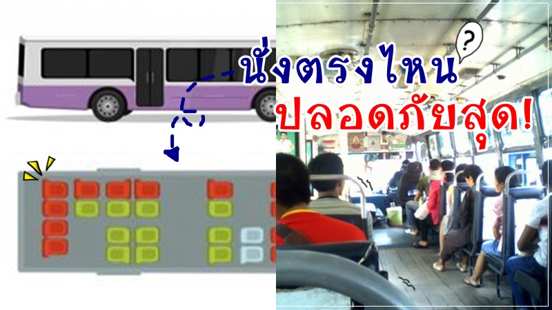 ควรนั่ง: ที่นั่งที่อยู่ตรงข้ามกับประตูขึ้นลง เพื่อสะดวกในการหนีออกจากตัวรถ พยายามเลี่ยงที่นั่งติดกระจกเพื่อลดโอกาสในการได้รับบาดเจ็บในจังหวะที่กระจกแตก