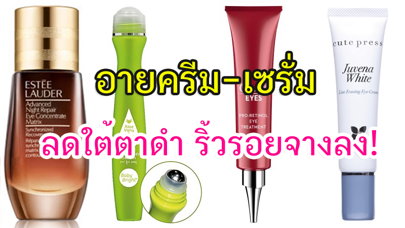 รับรองเลยว่าปัญหาใต้ตาดำ และ ริ้วรอยรอบดวงตา ที่เป็นปัญหากวนใจสาวๆ จะต้องค่อยๆดีขึ้นอย่างแน่นอน..อยากรู้กันแล้วใช่ไหมว่าจะมี อายครีม-เซรั่ม ตัวไหนบ้างที่ใช้ดี ถ้าอย่างนั้นเรามาดูไปพร้อมกันเลยดีกว่าค่าาา…