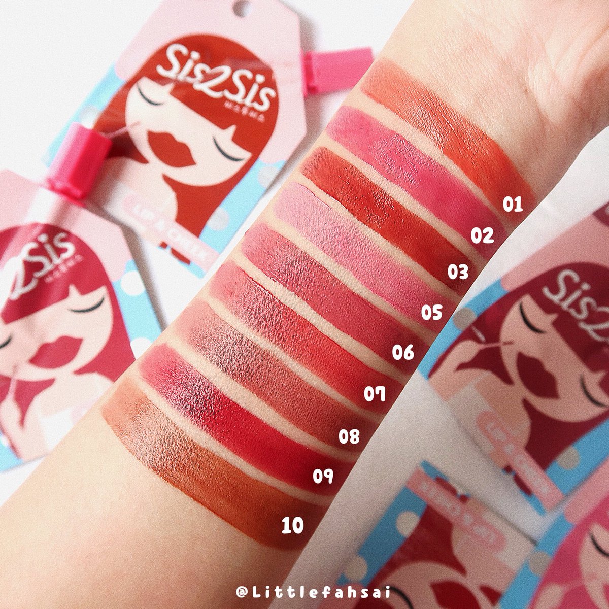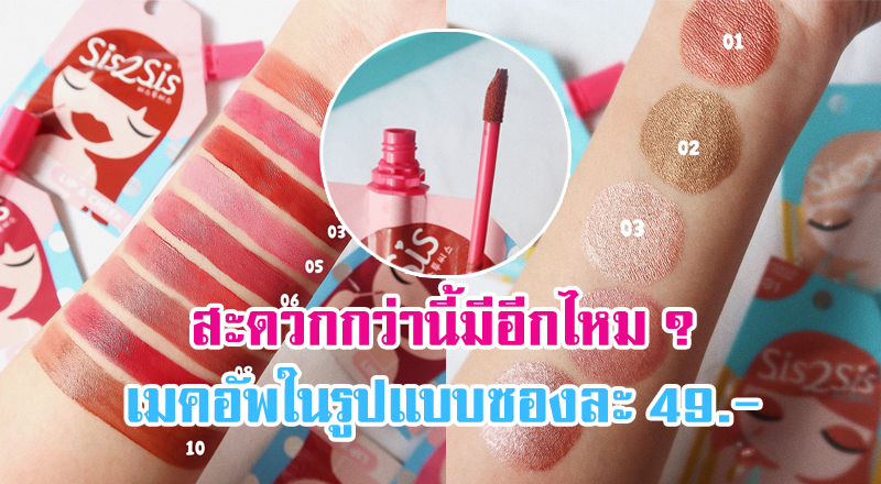เริ่มต้นด้วยการรีวิวสีลิปสติก sis2sis มีทั้งหมด 10 สี ให้เลือกสวยกัน ไม่ว่าจะโทนส้ม, ชมพู, แดง เริ่ศทุกสีค่ะ แต่ถ้าใน 7-11 อาจมีไม่คบทั้ง 10 นะคะ ต้องไปหาสักหน่อยที่ร้าน EVEANDBOY และแอดขอแนะนำ 3 สีนี้เลยค่ะ