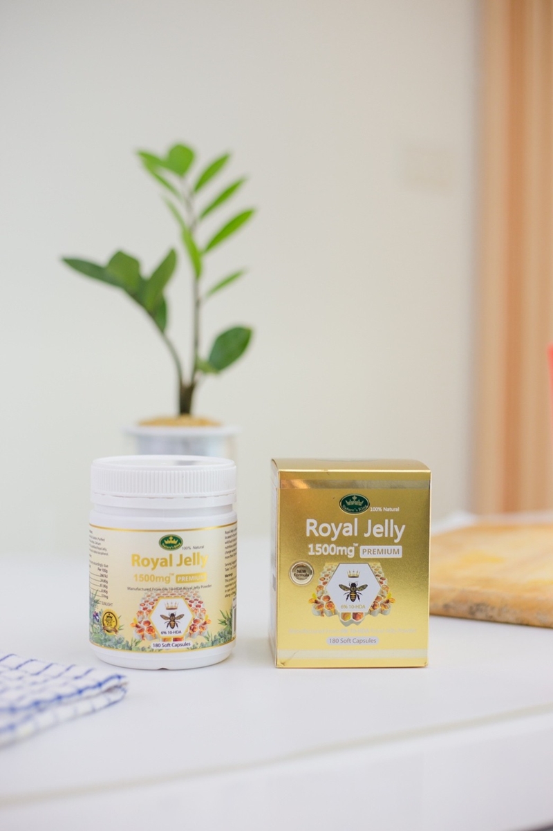 แน่นอนว่าในนมผึ้งสูตรนี้นอกจากจะช่วยเรื่องริ้วรอยและผิวพรรณแล้ว เขายังช่วยลดอาการวัยทอง พร้อมเสริมภูมิคุ้มกันให้ร่างกายแข็งแรงขึ้นด้วย โดยสูตรพรีเมี่ยมนี้มีขนาดบรรจุเพียง 180 แคปซูลเท่านั้นค่ะ ส่วนวิธีการรับประทาน ให้ทานวันละ 1 แคปซูล ก่อนอาหารเช้า หรือ ก่อนนอน สูตรพรีเมี่ยมนี้เราแนะนำมากๆ สำหรับสาวๆ วัย 35+ ที่ยังอยากหน้าเด็ก ผิวดี ไม่ดูแก่ก่อนวัยค่า
