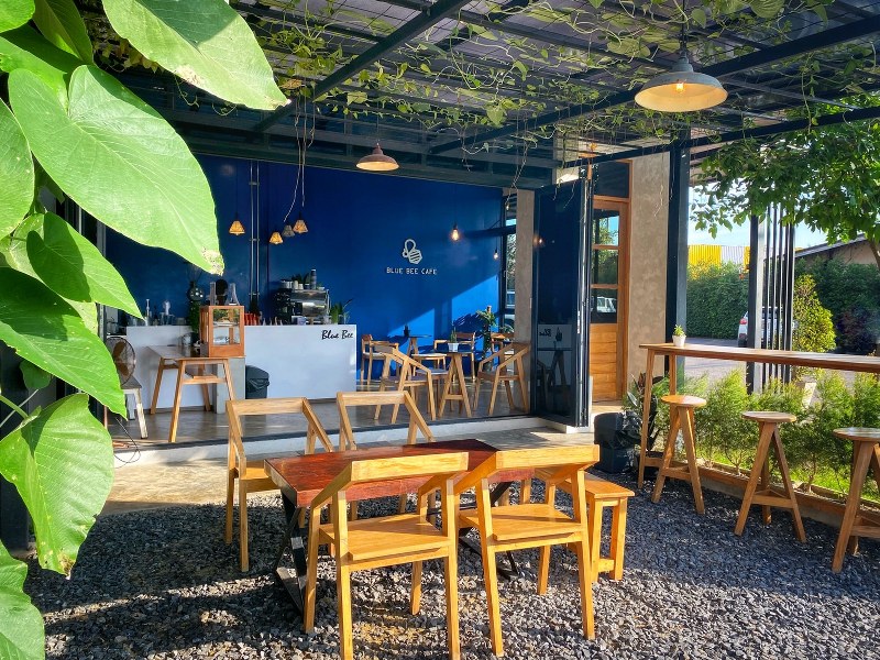 BLUE BEE CAFE คาเฟ่สวนผึ้งเล็ก ๆ บรรยากาศสบายๆ มีจุดเริ่มต้นจากการอยากทำกาแฟกินเองที่บ้าน จึงกลายเป็นความตั้งใจที่อยากส่งต่อความละมุนที่แสนเรียบง่ายนี้ให้กับลูกค้าที่มาเยือน รวมถึงใช้พื้นที่ของคาเฟ่นี้เป็นที่สำหรับพักผ่อนหย่อนใจ พบปะพูดคุย ท่ามกลางบรรยากาศที่แสนอบอุ่นและเป็นกันเอง