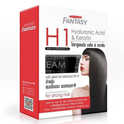 น้ำยายืดผมถาวรของ Carebeau Fantasy Hair Straightener Cream ตัวนี้เขามีด้วยกัน 2 สูตร คือ สำหรับผมอ่อนแอ ทำสี และผมแข็งแรง ธรรมชาติ มีส่วนผสมของไฮยาลูรอนิค เอซิด เติมความชุ่มชื้น ฟื้นฟูผมไม่ให้แห้งกรอบ ไม่ช็อตระหว่างยืดผม มีเคราตินช่วยปิดเกล็ดผม ให้ผมเรียงตัวสวย เรียบลื่นเงางาม ผมตรงสลวยแบบไม่เสียค่ะ