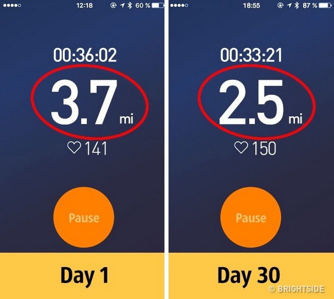 สัปดาห์ที่สี่ ก่อนทดลองดื่มเบียร์เขาเคยวิ่งในช่วงเช้าได้อย่างน้อย 7 ไมล์ 10-14 ครั้งต่อเดือน แต่หลังดื่มเบียร์ติดต่อกันมาสี่สัปดาห์ ความสามารถในการวิ่งก็ลดลง วิ่งได้เเค่ 5 ครั้งต่อเดือน