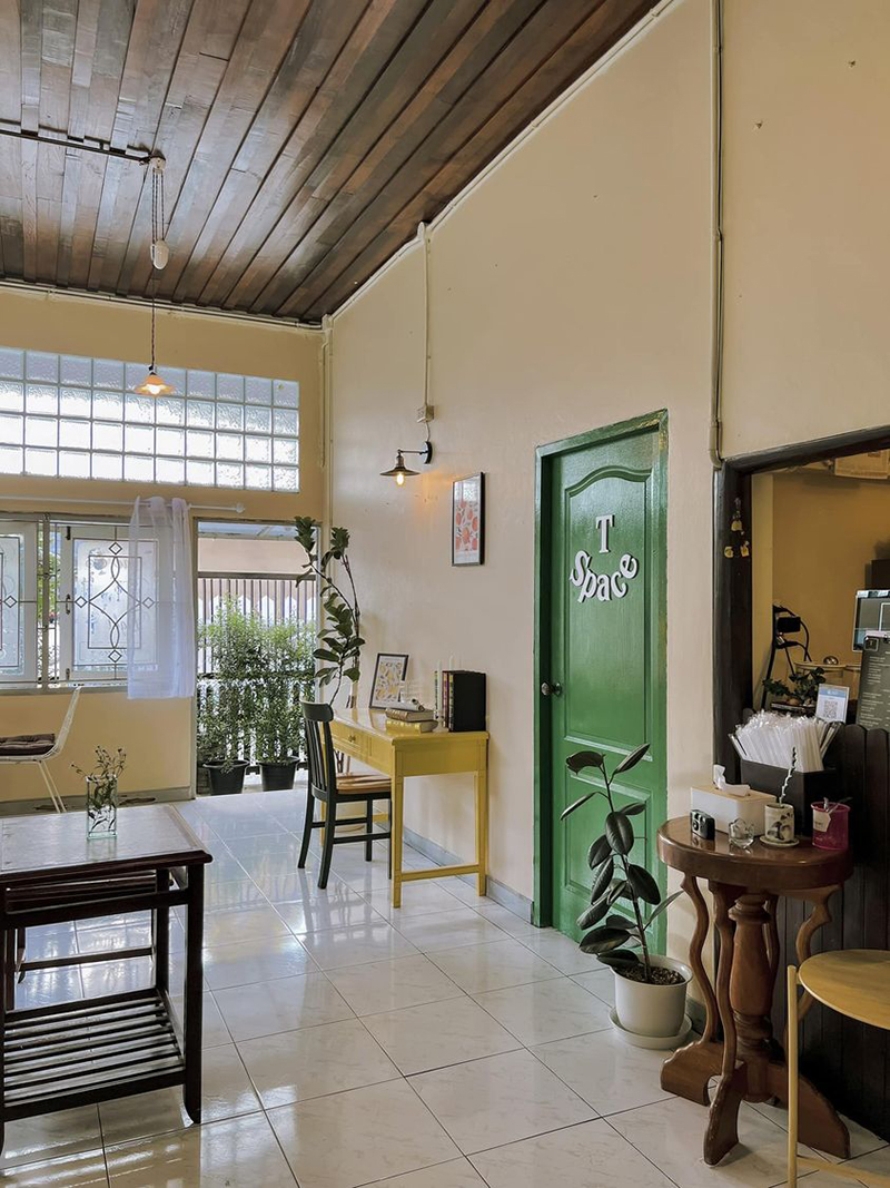 T space ร้านกาแฟเล็กๆ ตั้งอยู่แถวสี่แยกวัดน้ำล้อม บรรยากาศสไตล์โฮมมี่สุดอบอุ่น มีต้นไม้สีเขียว รั้วไม้ล้อมรอบ เมนูของร้านจะมีทั้งกาแฟ Non-Coffee เบเกอรี่โฮมเมดสดๆ จากเตา มีมุมน่ารักๆ ให้ถ่ายรูปเยอะ